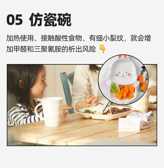 市面上有一种「密胺餐具」,图案丰富、表面光滑,像陶瓷一样精致,所以也叫仿瓷餐具。它材质坚硬耐摔、很好清洗,价格也不贵,不少家长都会给娃买。
