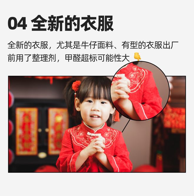 过年的时候,家长都喜欢给孩子买新衣服,穿着不同衣服的娃真的太可爱了。不过,全新的衣服,很容易出现残留甲醛的问题。