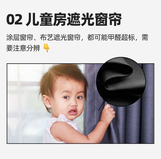为了让孩子睡个好觉,很多家长都会买遮光窗帘给孩子挡住光线。遮光窗帘甲醛超标风险不低。