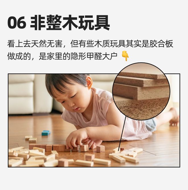 ☝️ 无法判断就扔!可以换成纯木质玩具,或者其他材质的玩具,比如塑料、布艺等,一定要选择正规品牌和安全检测合格的玩具