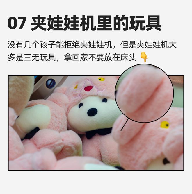 孩子在外面看到夹娃娃机就走不动路,抓到娃娃以后天天抱着,甚至还要放在枕边睡觉。不过,夹娃娃机里很多都是三无小娃娃,可得多加注意。